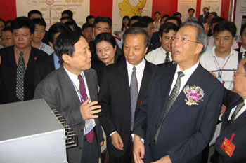 | CERNET專家委員會主任吳建平教授與清華大學(xué)副校長龔克教授在展會現(xiàn)場 |